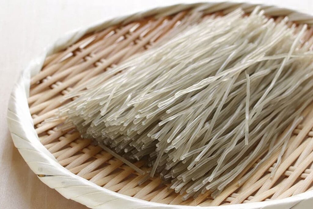Dangmyeon é o macarrão coreano feito de batata doce. Não tem glúten, tem poucas calorias, tem consistência elástica e sabor neutro. Normalmente é servido à temperatura ambiente ou morno, é o principal ingrediente do japchae e vai bem em ensopados com carnes, refogado com legumes e hot pots.